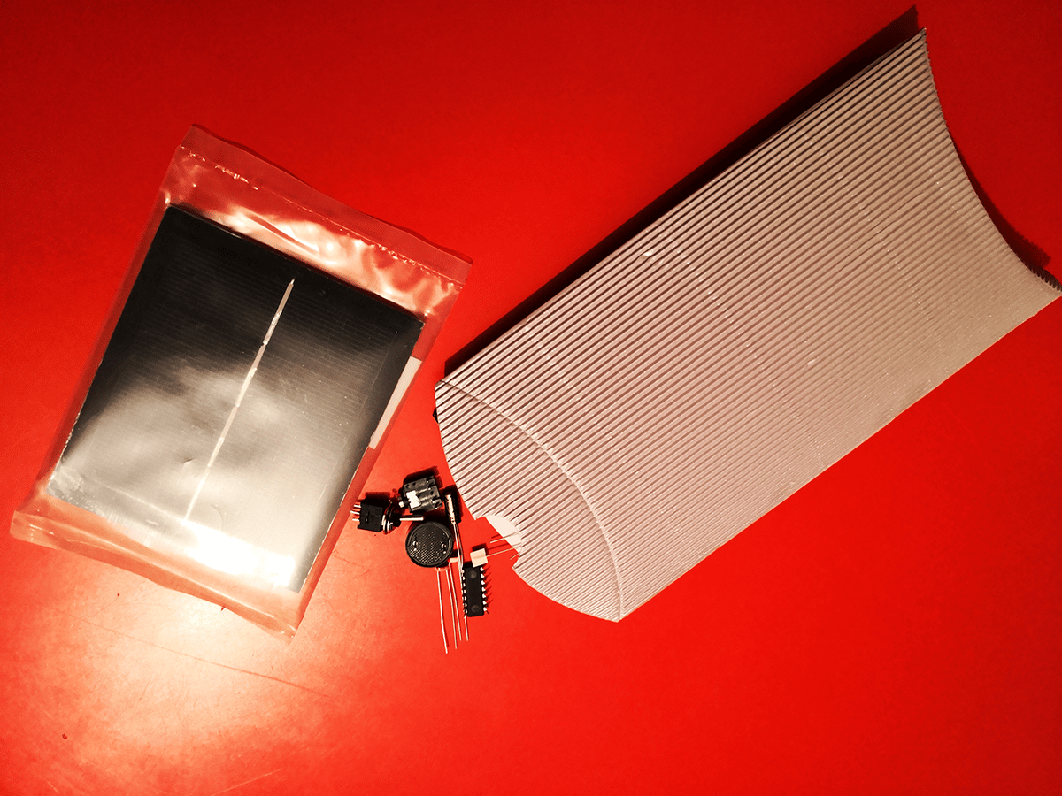 Do It Yourself Kit to make your own Noise_Bots. Each RoboKit contains all the parts to build a fully functioning bot which can be connected to speakers via minijack. You will make a stereo robot in a few steps. The schematics and instructions are included, the aesthetics and outlook of your bot will be determined by your own creativity. Large solar panel included, no need for batteries. Features on and off switch so you can display your bot without hearing it (they have a mouth/mic). Packaging in stylish silver recycled cardboard. Each kit contains a small gift surprise (that's amore!). Tag your bot with #noise_bots